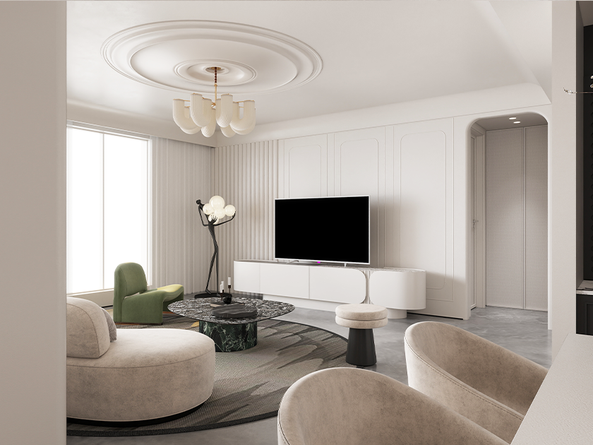 法式装修风格注重精细的装饰细节、曲线和对称的设计。它营造出一种浪漫、优雅和奢华的氛围,是热爱复古和典雅风格的人们的理想选择。布局上突出轴线的对称,豪华舒适的居住空间,细节处理上运用了雕花、线条,制作工艺精细考究。以洛可可风格为主。再搭配上整体纯净洁白的环境,清淡幽雅且显高贵气质,这样的灯饰效果反而成了装饰的点睛之笔。