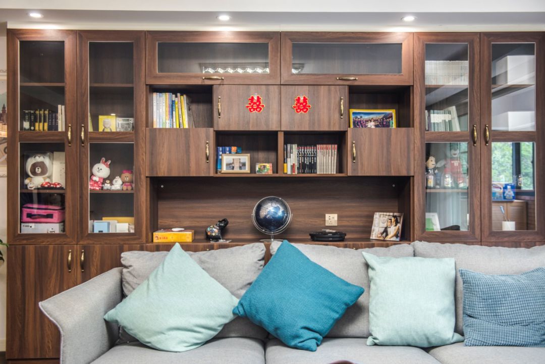 沙发后面的组合柜的神奇就是不仅仅装饰美观,收纳的容量也可以大的让你觉得夸张。家,充满了很多有意义的事物,装饰柜很多装饰品都是一起去旅行带回来的。生活应该是抬眼看得到诗情画意,坐下够得到人间烟火。不能接受索然无味,无趣没有温度的家。