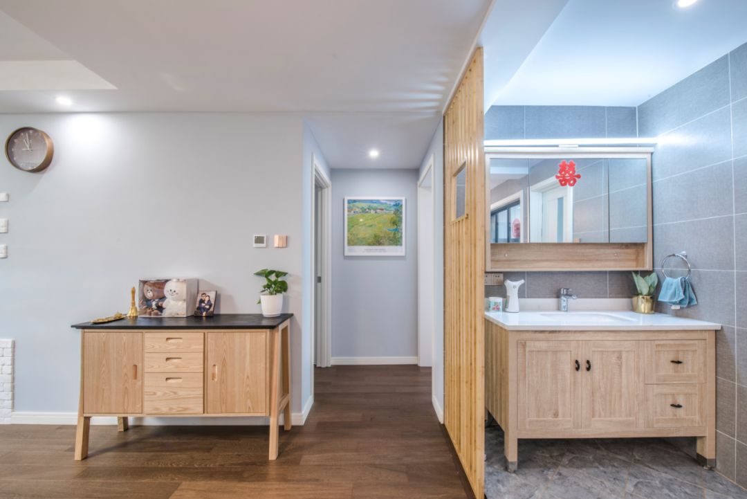 好的设计,源于信任。超大采光的阳台采用白色调给人以亲近感,是我们触手可及的温度,与原木的结合,将天然气息植入家中。再辅以少许其他配色,便是设计师为业主精心勾勒的家。