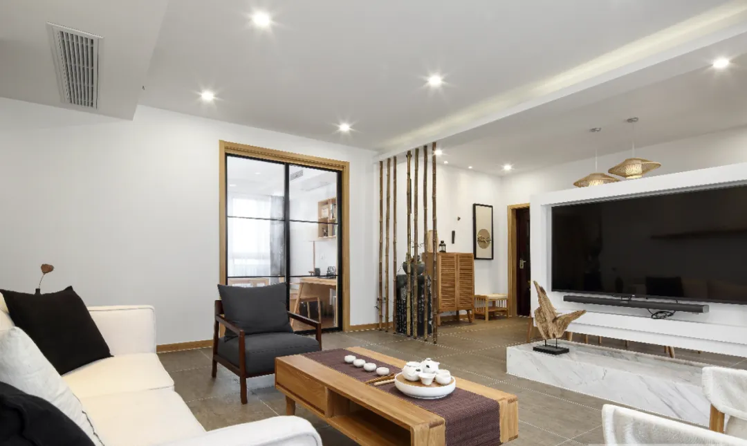本期业主是一个三口之家,房屋户型方正,所以在布局上改动细微。另外,男主人喜爱茶文化,所以希望家中有茶室,希望整个房屋更有品质感。所以设计师采用日式简约风格为基础,打造日式禅意的调性与房主期盼的茶文化更加契合。