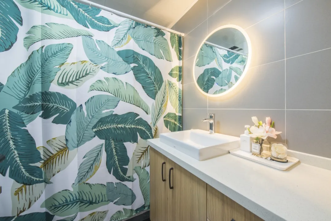 原木色的设计贯穿全家的每个角落,卫生间也不例外。另外镜面环形暖灯的设计更贴合女主人的使用习惯。不仅是卫生间,整个家带给人一种轻松愉悦的氛围。