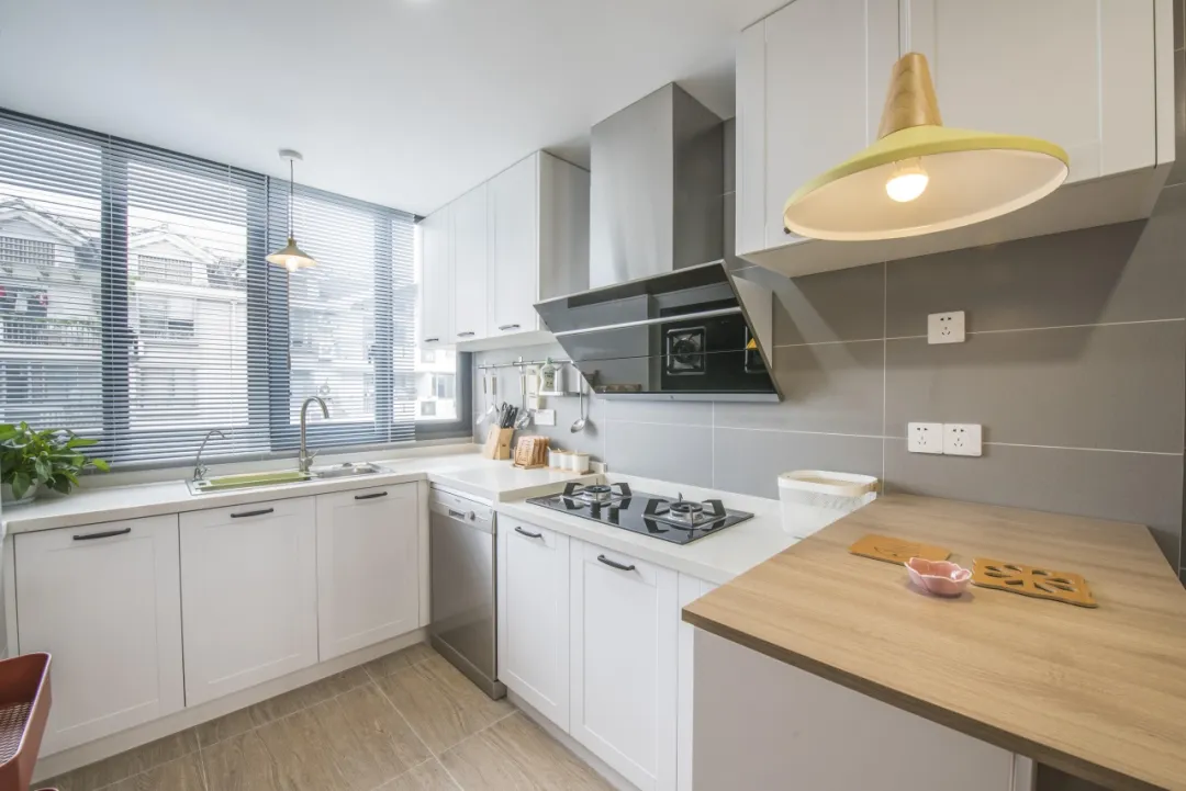 2、餐厨打通,扩大餐厅视野面积,也让房屋更显南北通透,增设小吧台也让区域空间更加凸显;